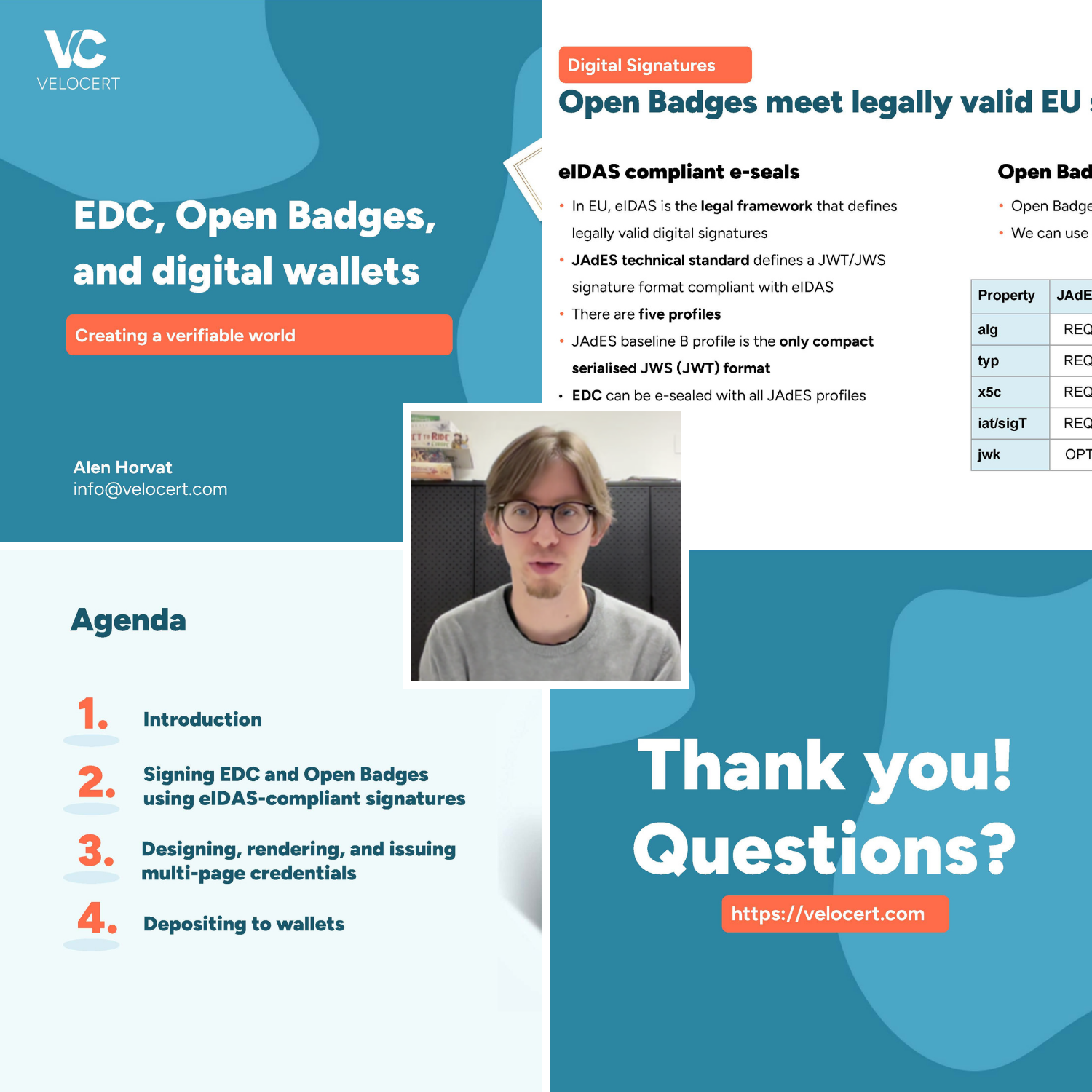 Lead architect Alen Horvat demonstrated how Velocert helps institutions move beyond static PDFs toward secure, portable data through several key innovations: